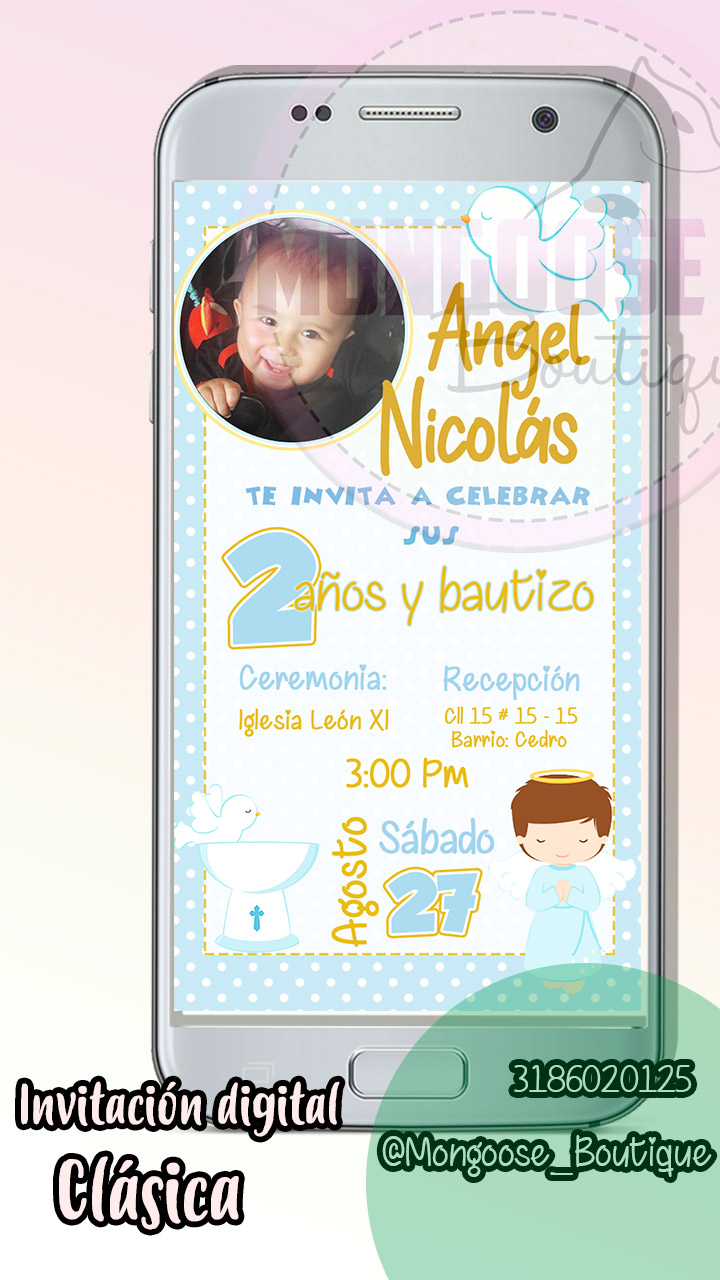 Invitación Digital para Bautizo en formato de imagen de Alta calidad, que te entregamos lista para que compartas con todos tus invitados por whatsapp, Messenger y todas tus redes sociales.